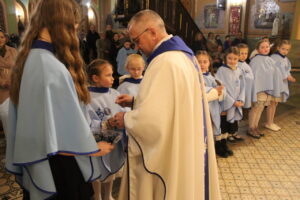 niebieskie pelerynki i medaliki – znak szczególnej opieki Matki Bożej i gotowość